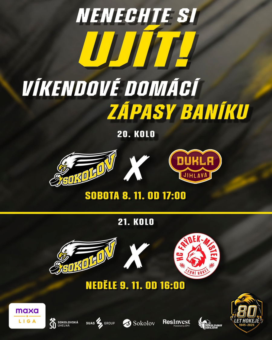 Nyní čeká na Baník důležitý víkend. V sobotu 8.11. od 17:00 nastoupí v Sokolově proti Dukle Jihlava a hned druhý den, v neděli 9. 11. od 16:00 znovu doma proti Frýdku-Místku. Z tohoto dvojboje musí Baník vytěžit co nejvíce a potřebuje i podporu diváků.